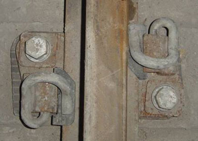 防脱护轨装置 特点:该护轨支架采用铸钢原料,强度高、耐腐蚀性能好。该产品与钢轨之间设置绝缘,可在既有线及新建城市轨道交通的各种轨道结构上安装使用。